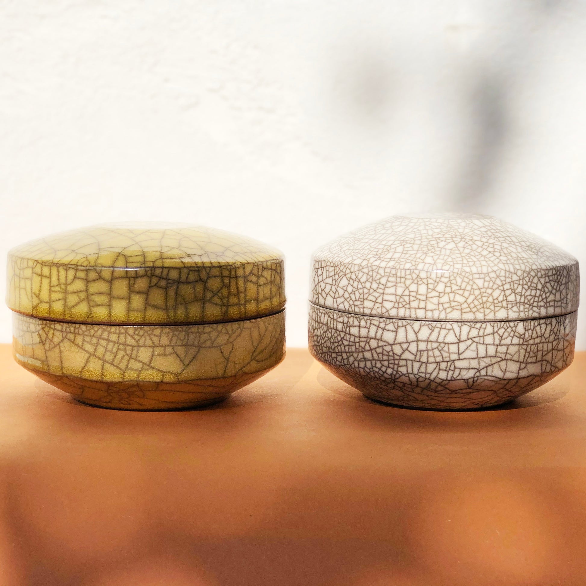These hand-thrown Raku boxes are defined by their distinctive design widely known as Retak Seribu (a thousand cracks) or Craquelé. Hand-made by Gaya Ceramics of Bali, these contemporary yet classic ceramic boxes are decorative as they are functional. Made in Indonesia.