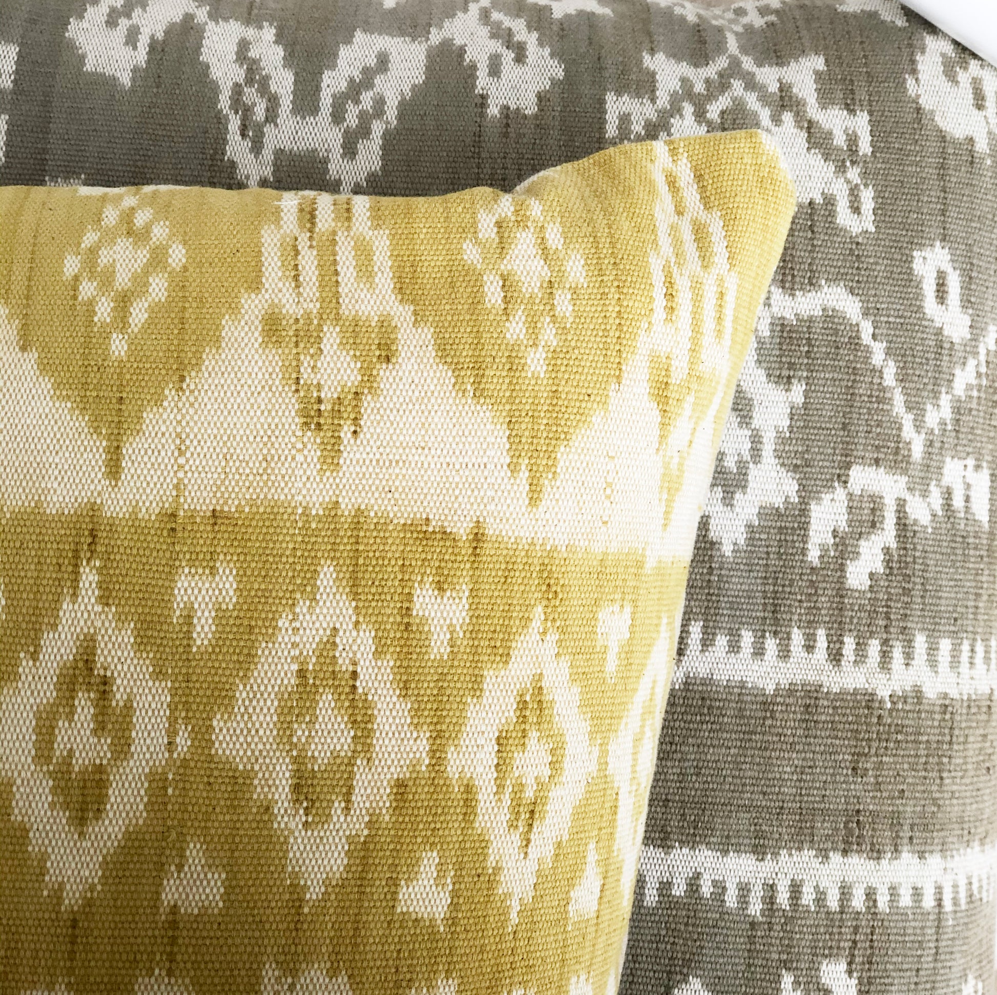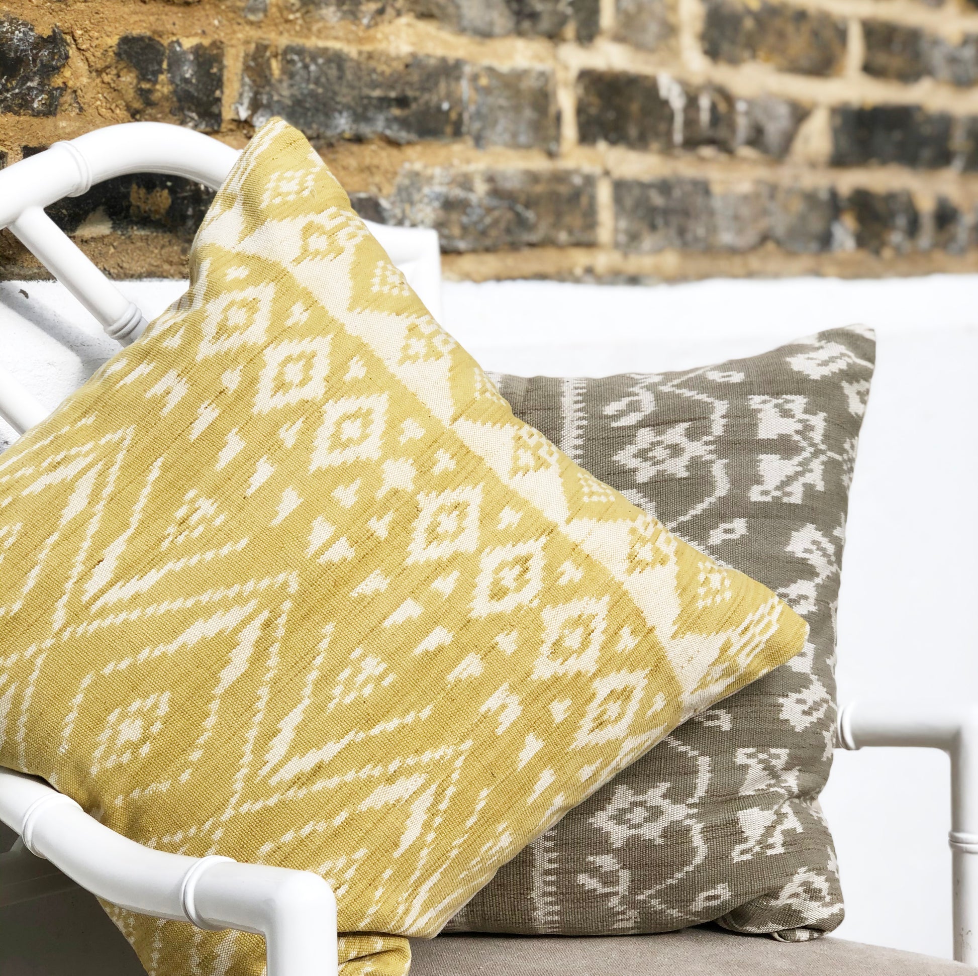 All cushion covers are fastened with a YKK invisible zipper closure. They are lined with lightweight fabric to provide a neat inside finish. The back of the cover is a natural beige 100% linen fabric.