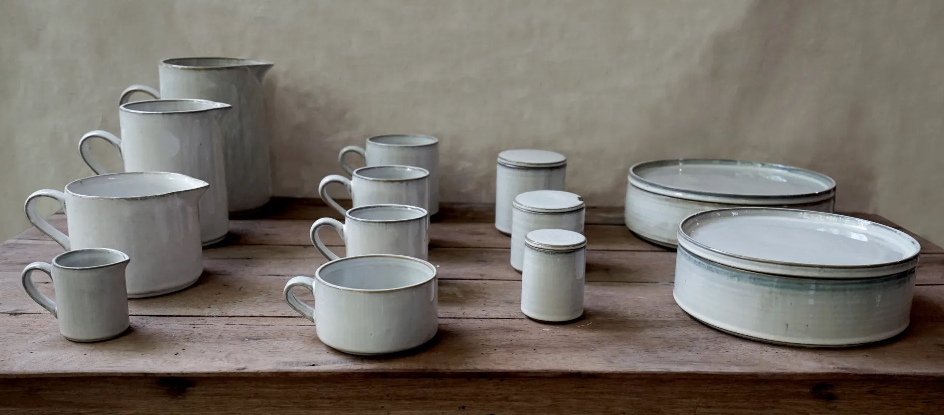 Yarnnakarn's pitchers exude a quiet elegance with their simple yet refined design. Ranging in size from large to small, they feature a cylindrical form with a gently flared spout for effortless pouring. Their gracefully curved handles add a touch of balance and functionality, while the slightly weathered edges give them a rustic, timeworn charm.