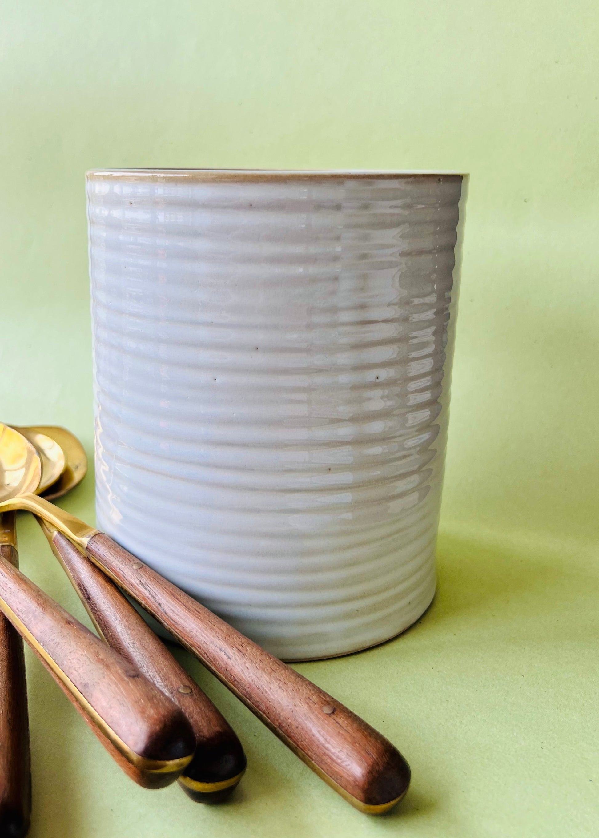 Defined by clean lines while brilliantly exuding a perfectly imperfect handcrafted feel, this crock comes in 2 sizes designed to hold cutlery, utensils, tools or stationery. Its minimalist form allows it to complement any decor style effortlessly.